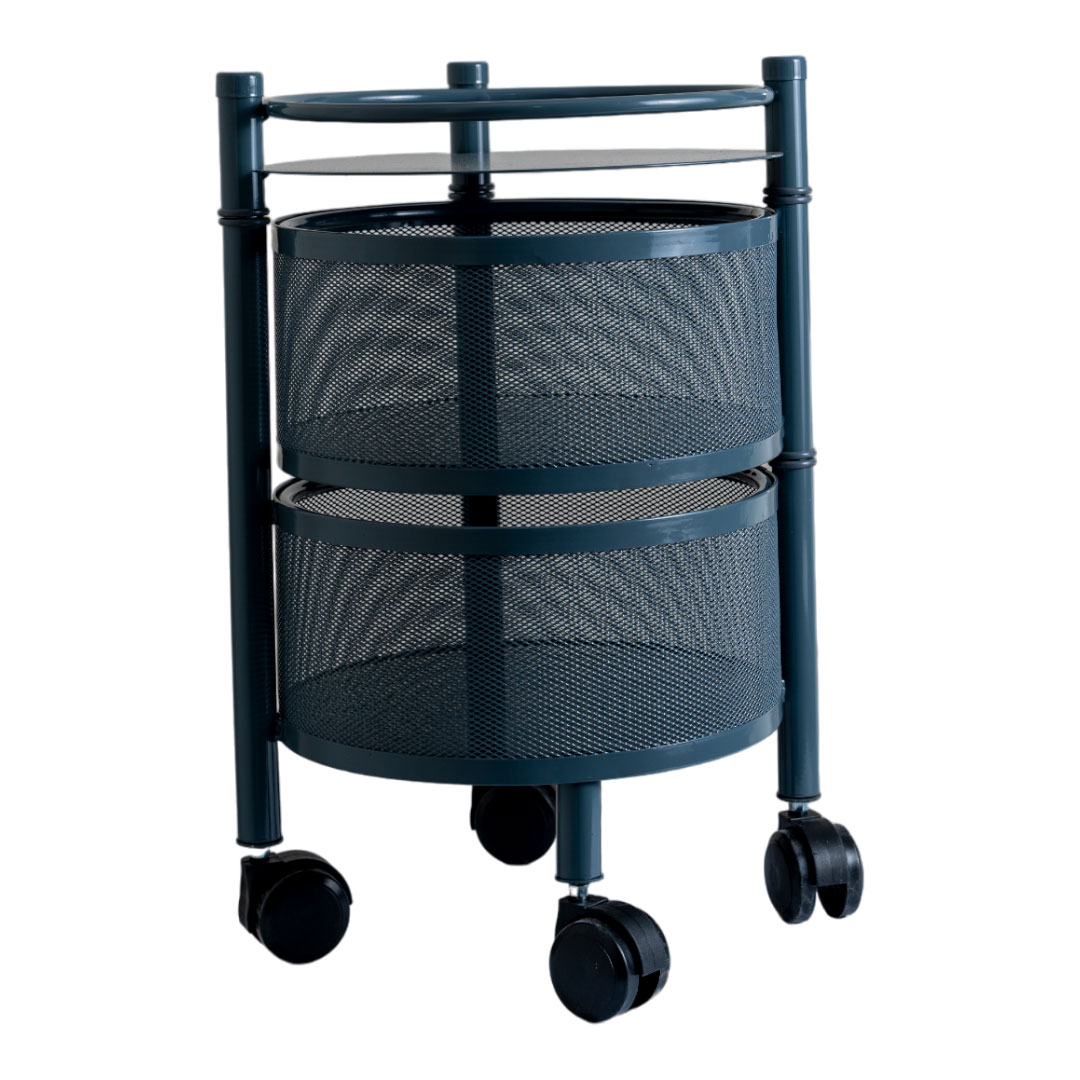 استند متحرک گرد گردان توری فلزی چرخدار ۳طبقه طوسی کد KT212