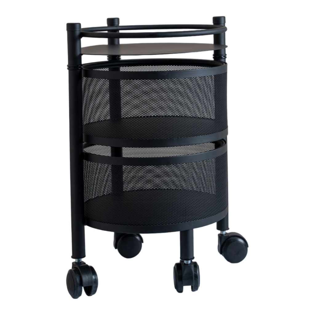 استند متحرک گرد گردان توری فلزی چرخدار 2طبقه مشکی کدKT215