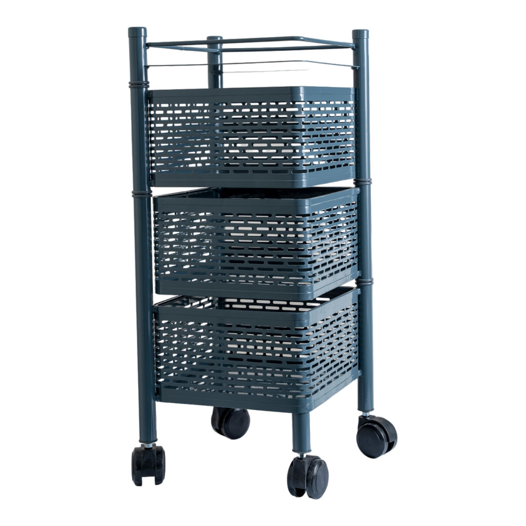 استند متحرک گرد گردان توری فلزی چرخدار ۳طبقه طوسی کد KT212